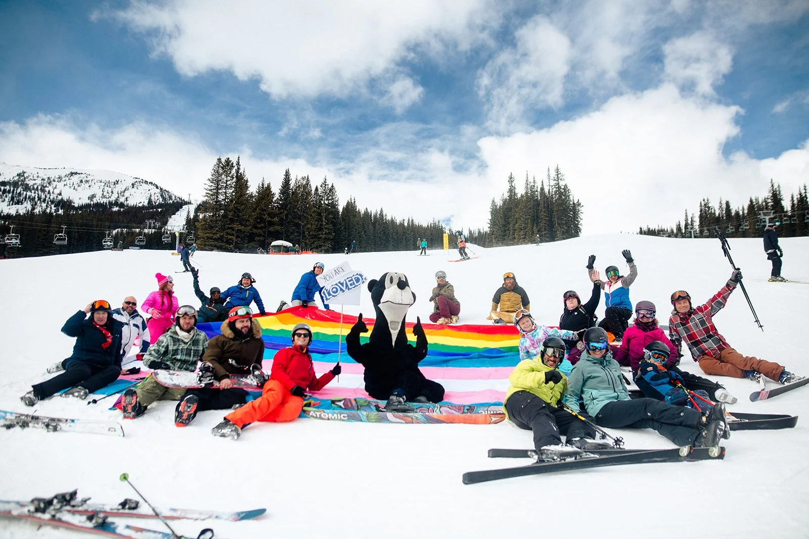 The fun begins at 11:30 am from the mid-mountain chalet. Holler and cheer as we ski the Pride Flag from mid-mountain chalet to lower mountain.
